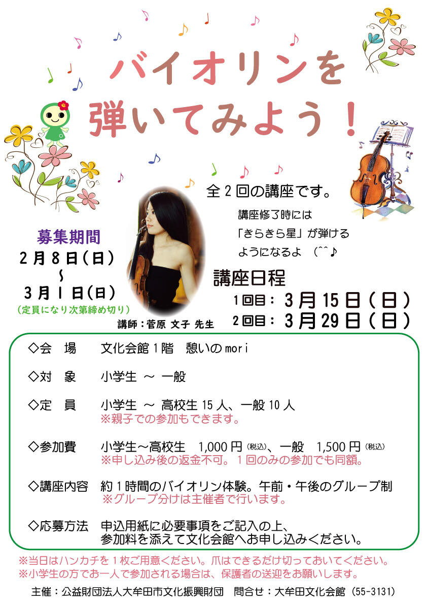 文化体験講座「バイオリンを弾いてみよう!」参加者募集