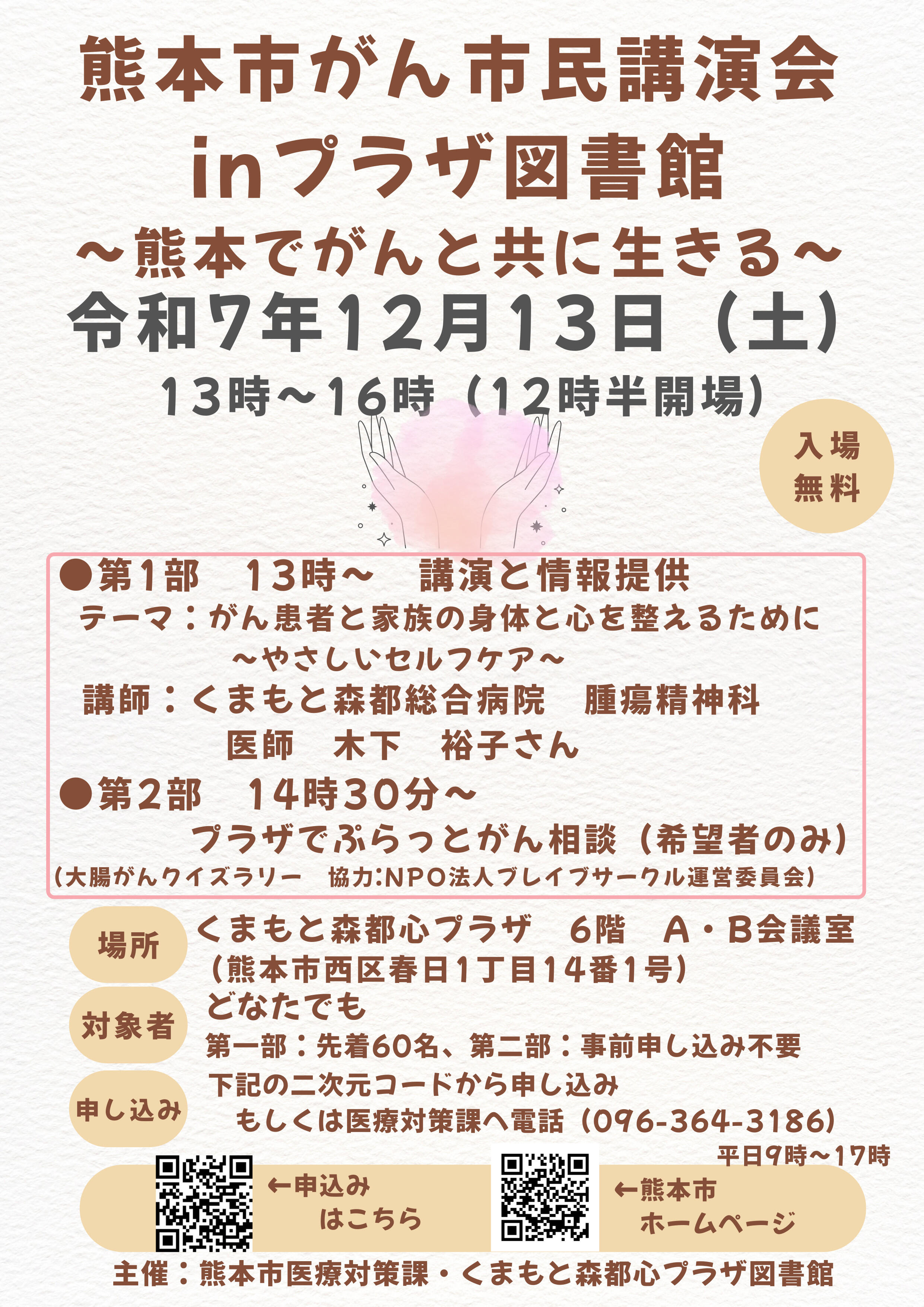 熊本市がん市民講演会inプラザ図書館~熊本でがんと共に生きる~【熊本連携中枢都市圏情報】