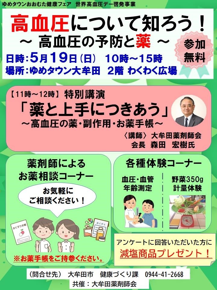 5月19日「ゆめタウンおおむた健康フェア(高血圧について知ろう!)」開催!)