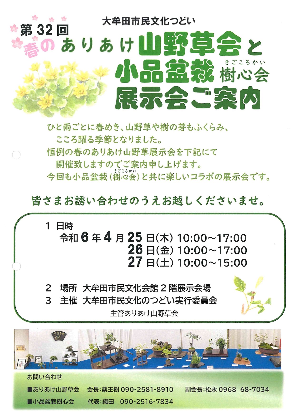第32回ありあけ山野草会と小品盆栽(樹心会)展示会ご案内