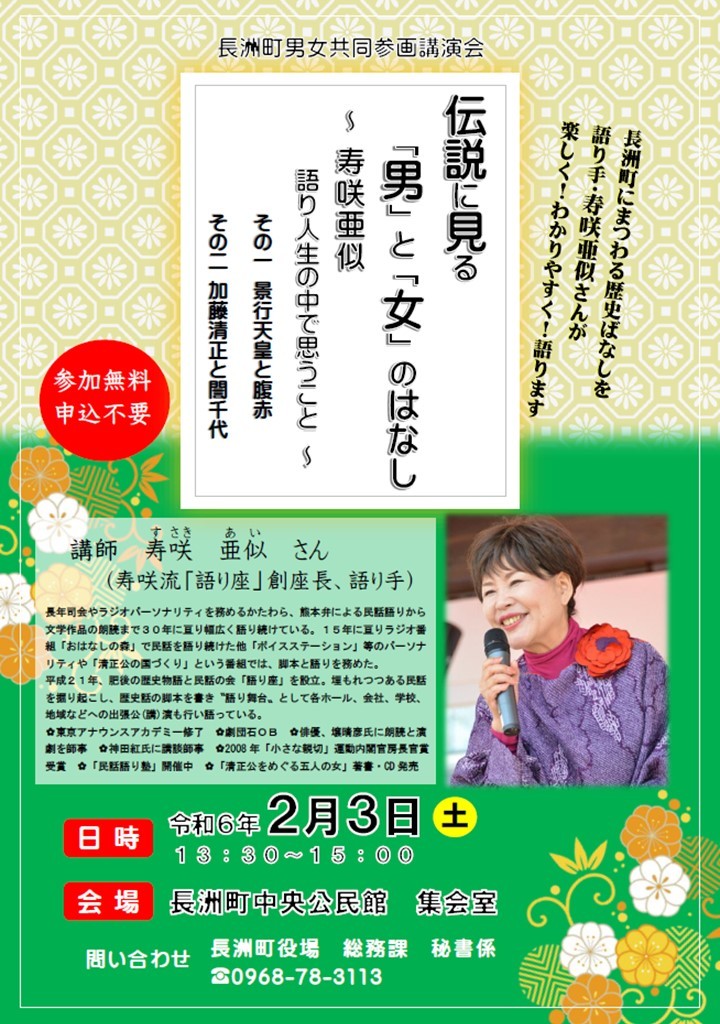 【2月3日(土)開催】~だれでも参加可能~長洲町男女共同参画講演会