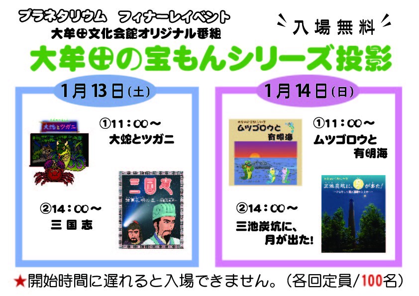 プラネタリウム フィナーレイベント 「大牟田の宝もんシリーズ投影」【文化会館】