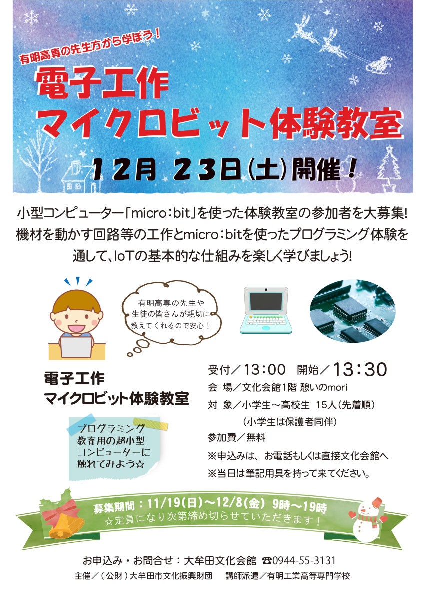 電子工作マイクロビット体験教室 参加者募集!