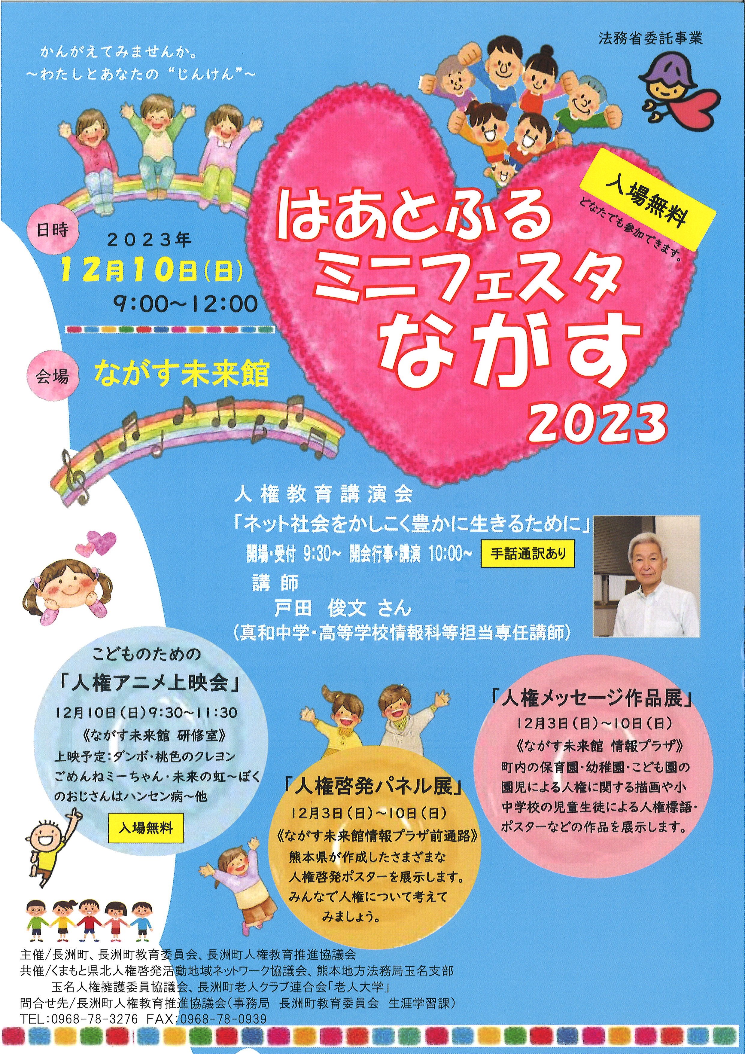 このほかにもこどものための「人権アニメ上映会」や「人権メッセージ作品展」「人権啓発パネル展」を同時開催します。この機会に人権について考えてみませんか。