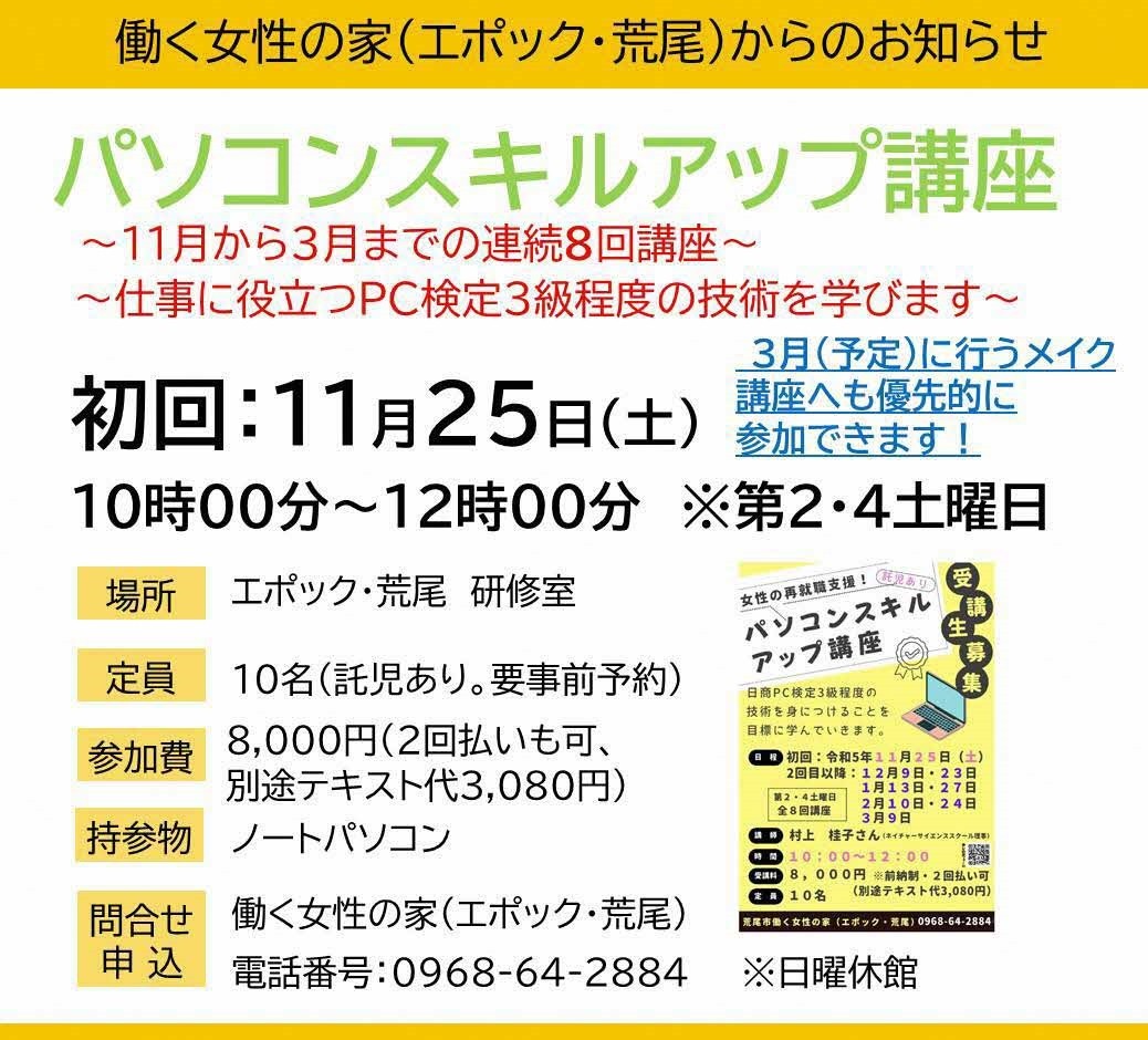 【問い合わせ先】荒尾市働く女性の家(エポック・荒尾)