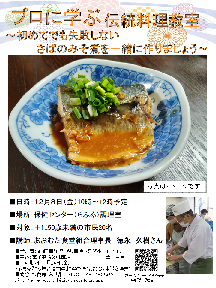 初めてでも失敗しないさばのみそ煮を作りませんか?ご参加をお待ちしています。保育士による託児も行います。