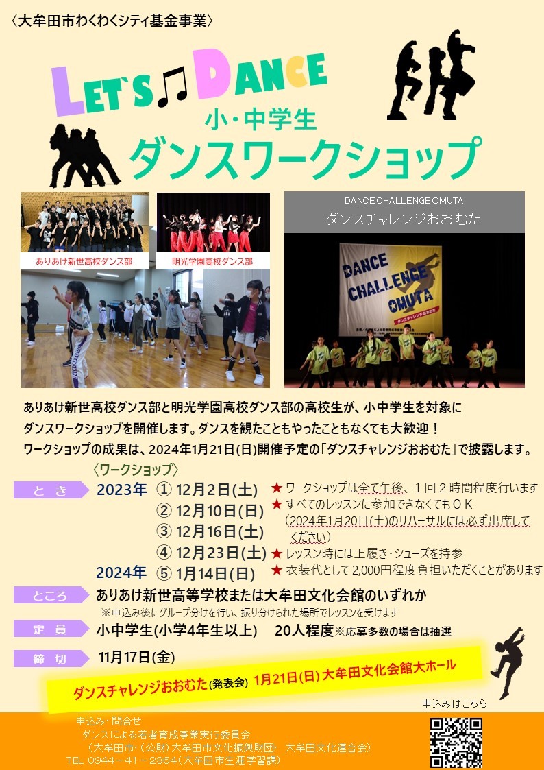 問合せ ダンスによる若者育成事業実行委員会(大牟田市・(公財)大牟田市文化振興財団・大牟田文化連合会)