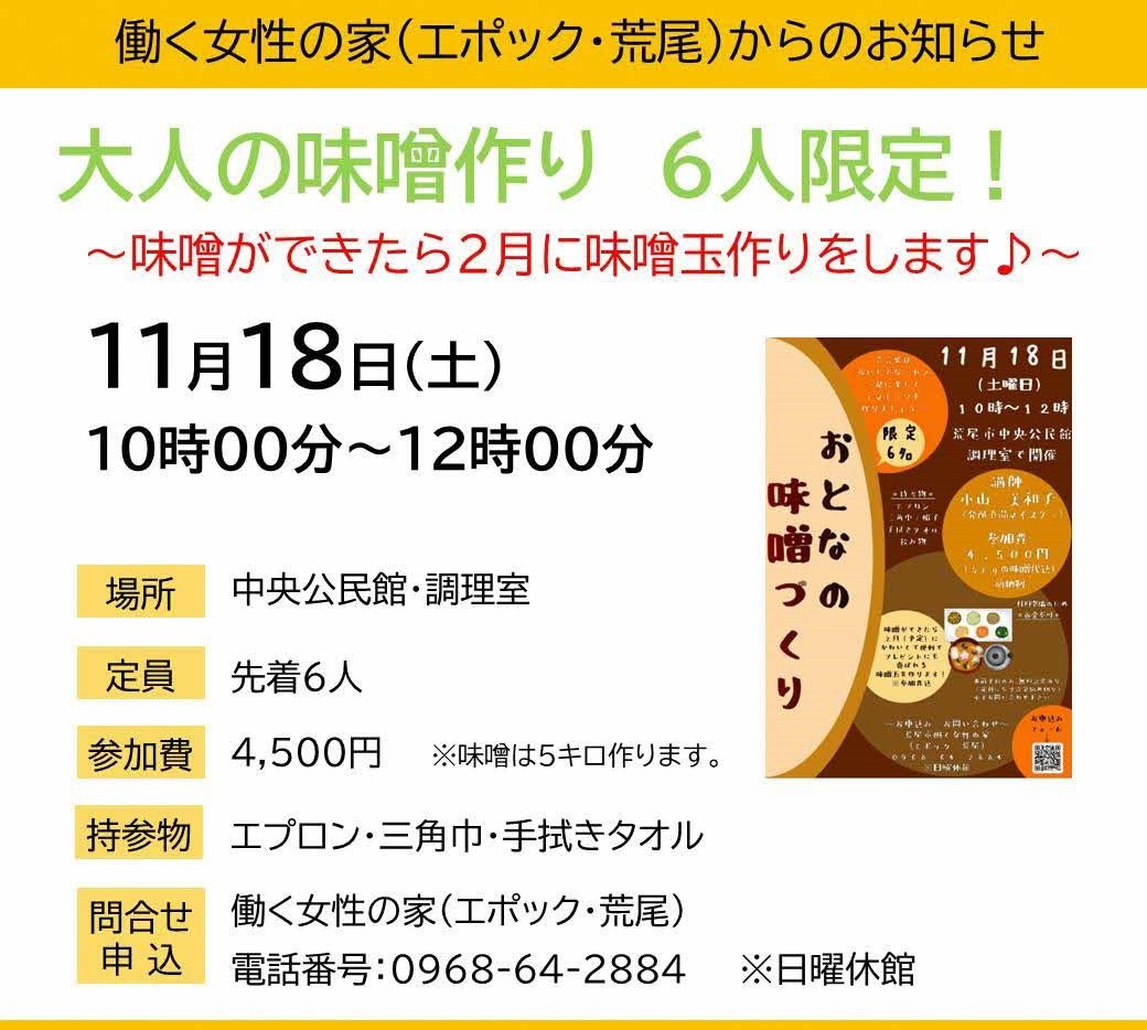 【問い合わせ先】荒尾市働く女性の家(エポック・荒尾)