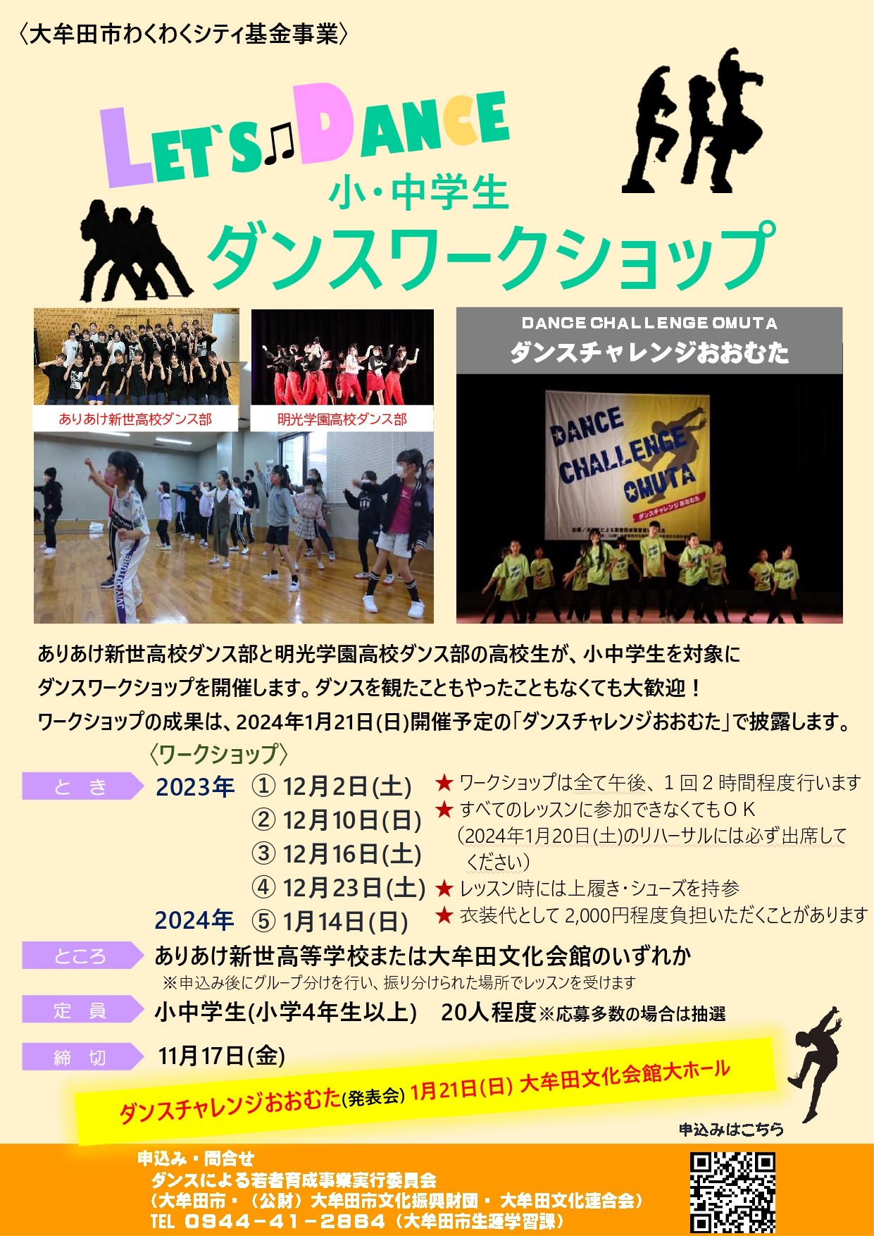 問合せ ダンスによる若者育成事業実行委員会(大牟田市・(公財)大牟田市文化振興財団・大牟田文化連合会)