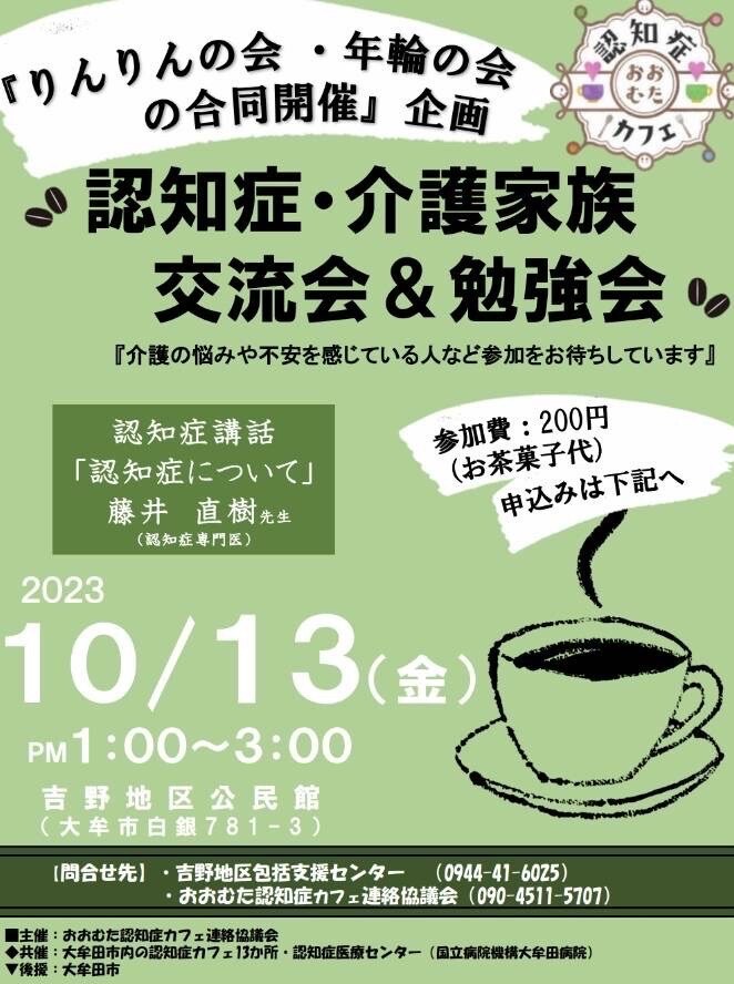 吉野地区地域包括支援センター(Tel:0944-41-6025)、おおむた認知症カフェ連絡協議会(Tel:090-4511-5707)