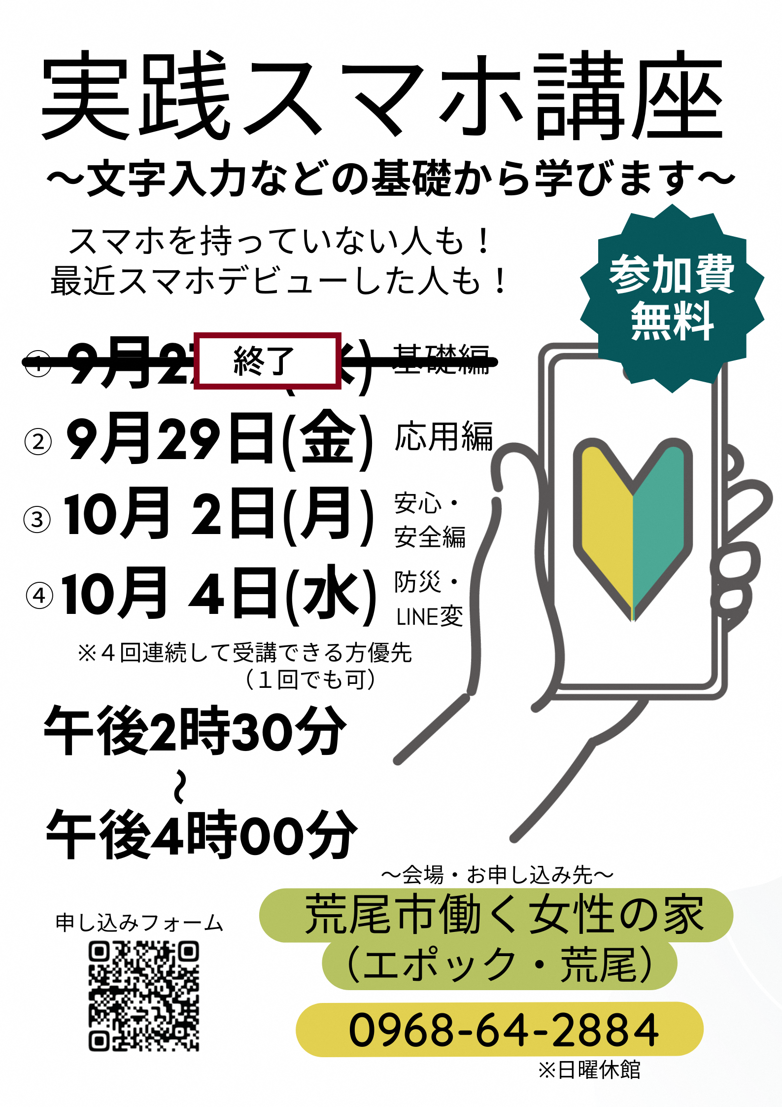 ■開講日/9月29日(金)…スマホ応用編、