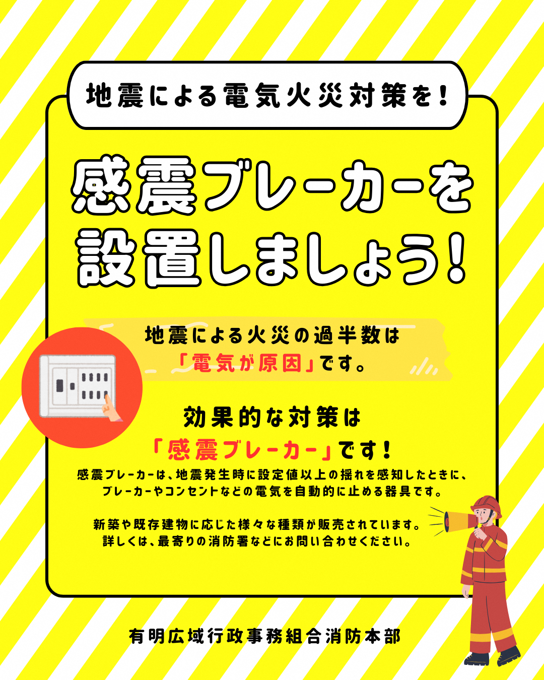 「感震ブレーカーの設置を!」http://www.ariake-119.or.jp/yoboinfo/breaker/breaker.html