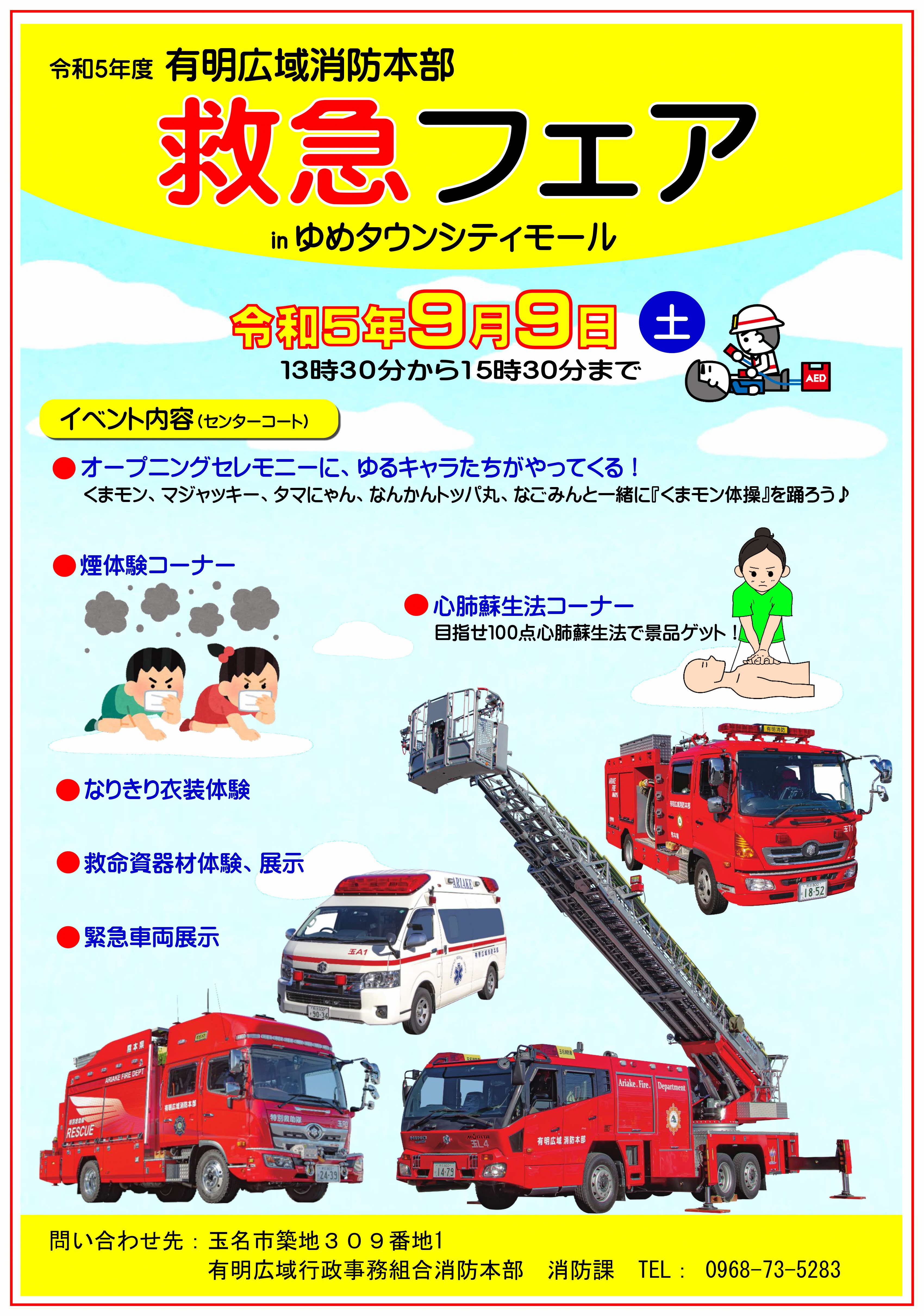 有明広域消防本部では救急の日に救急フェアを開催します。ぜひご来場ください。