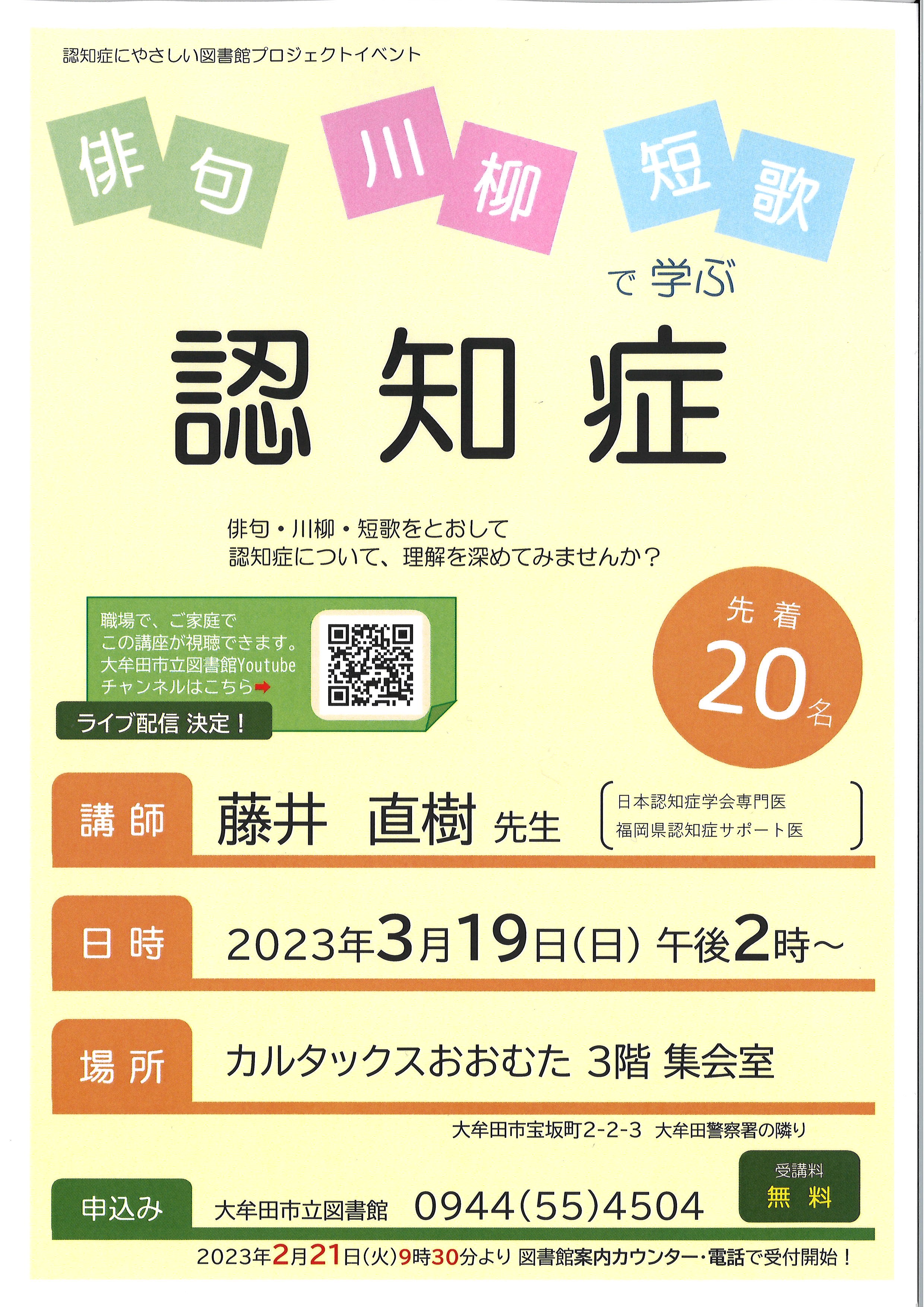 問合せ・申込み 大牟田市立図書館へ来館または電話(℡55-4504)