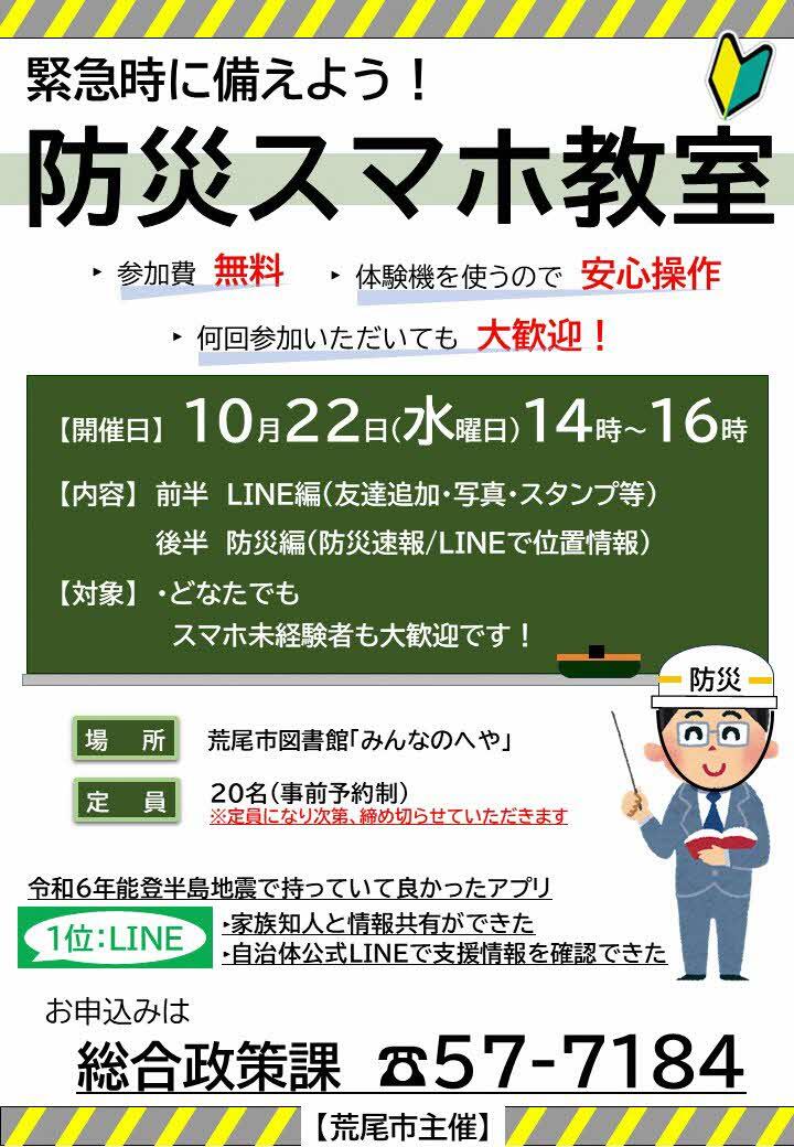 スマホ教室に関する記事は、「広報あらお10月号」をご覧ください。