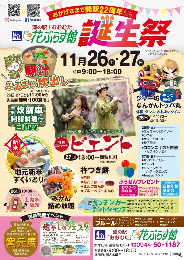 道の駅花ぷらす館では、“開駅22周年 誕生祭”が開催されます!