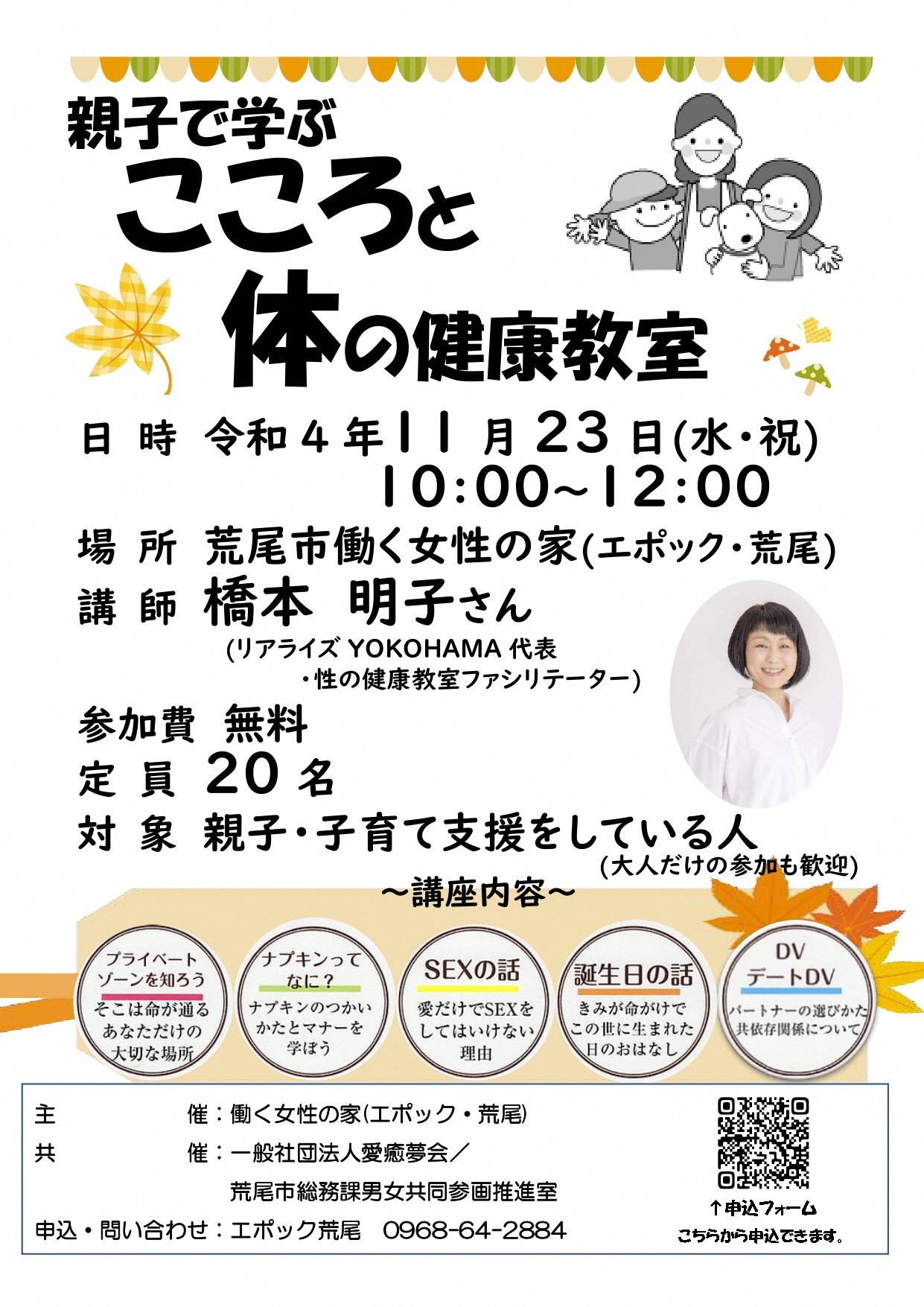 親子で「性」について考えます。正しい知識を身につけながら、いのちと性に向き合うために一緒に学びませんか?