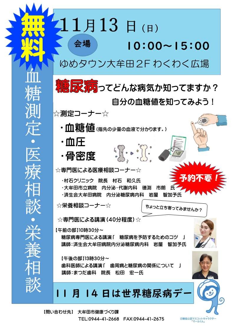 糖尿病ってなぁに?ゆめタウン大牟田でイベントを開催します!