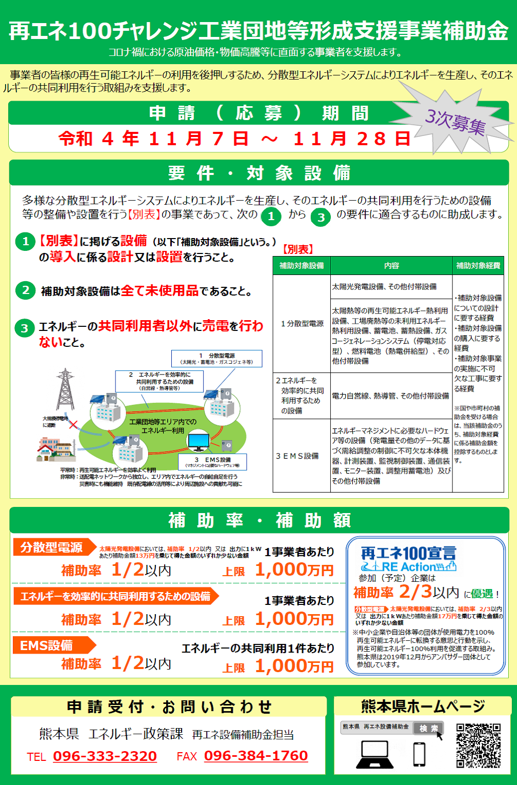 再エネ100チャレンジ工業団地等形成支援事業補助金(第3次募集)のお知らせ