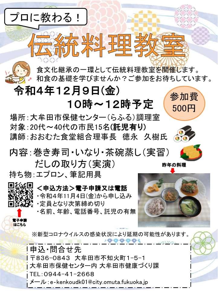 プロに教わる!伝統料理を開催します。
