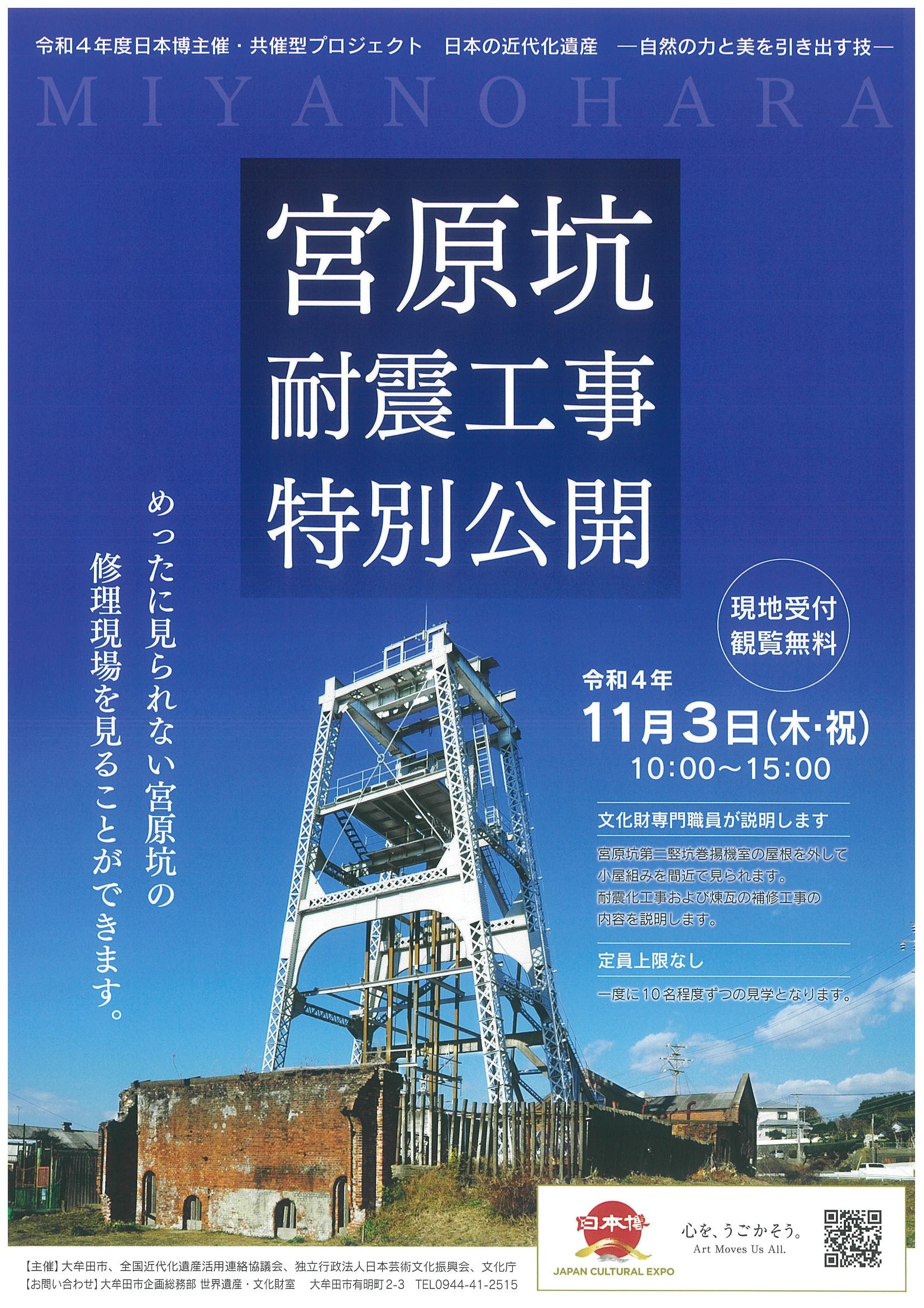 文化の日は、世界遺産の「宮原坑」へぜひお越しください!
