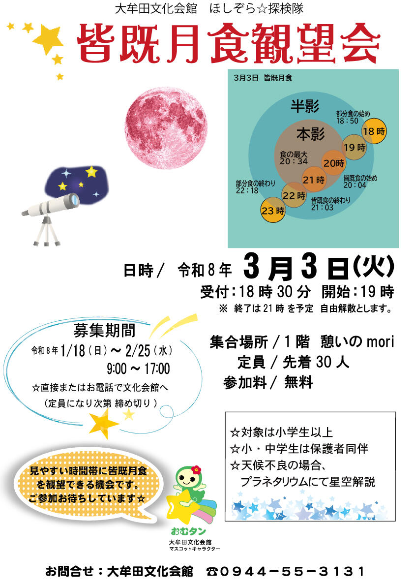 ほしぞら☆探検隊 「皆既月食観望会」 参加者募集