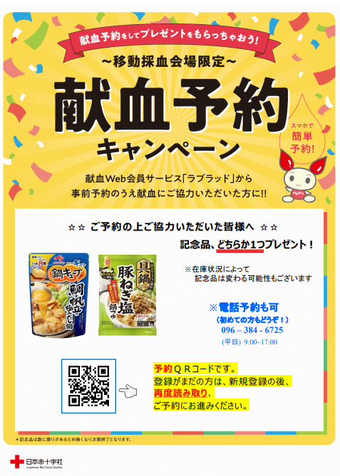 新型コロナウイルス感染拡大の影響で献血の協力者が減少し、熊本県内の輸血用血液が不足しています。 より多くの皆様のご協力をお願いいたします。