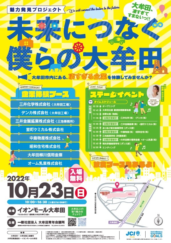 大牟田にある企業がどんな物を作り、どう役に立っているかを企業体験ブースなどで体験し、知ることができます。当日は、ステージイベントや飲食ブースも設置します。詳しくはチラシをご覧ください。