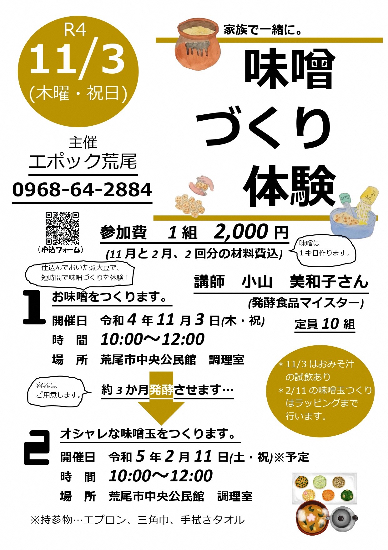 楽しく味噌作りをしよう!おみそ汁の試飲もあります♪味噌ができる2月にはおしゃれな味噌玉を作ります。