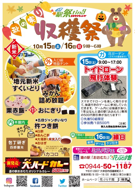 道の駅花ぷらす館では、“秋の実り 収穫祭”が開催されます!