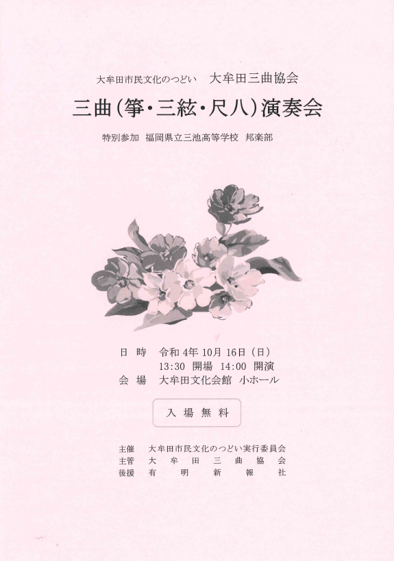 【大牟田市民文化のつどい】三曲(筝・三絃・尺八)演奏会を開催します!