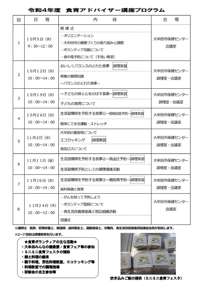 食育に関するボランティア活動を行なうための講座です。