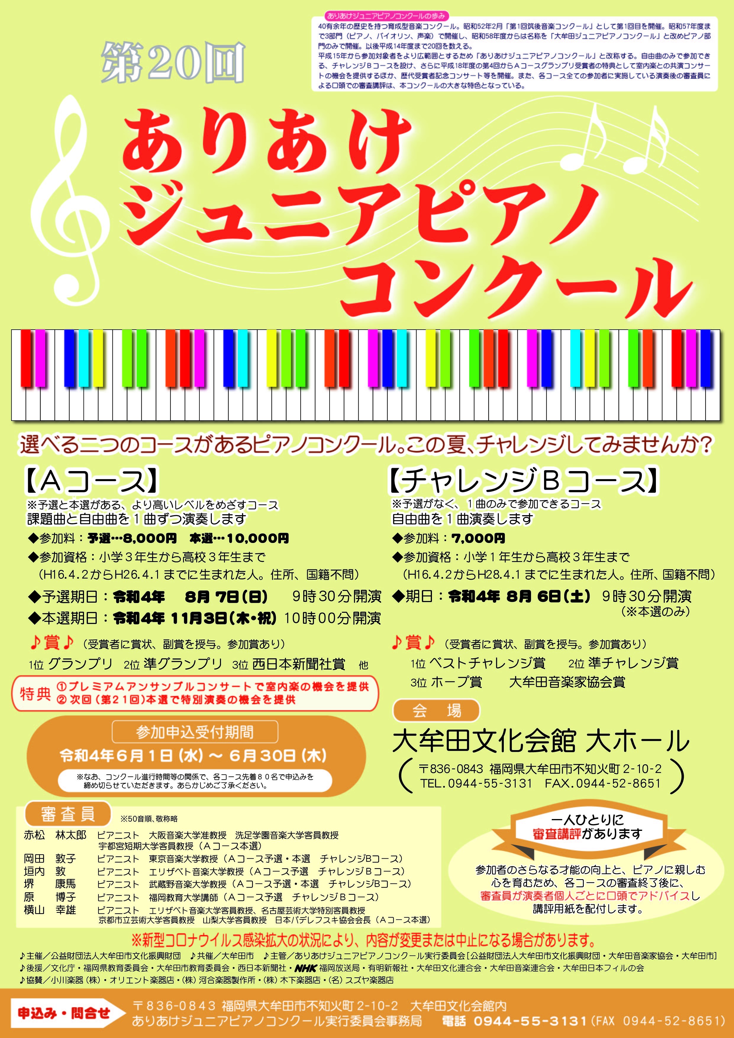 【大牟田文化会館】ありあけジュニアピアノコンクール開催します♪