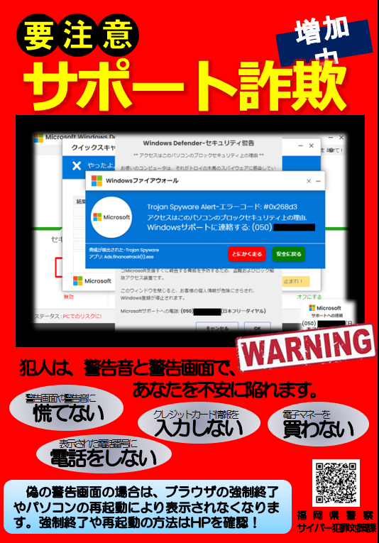 サポート詐欺に注意しましょう。