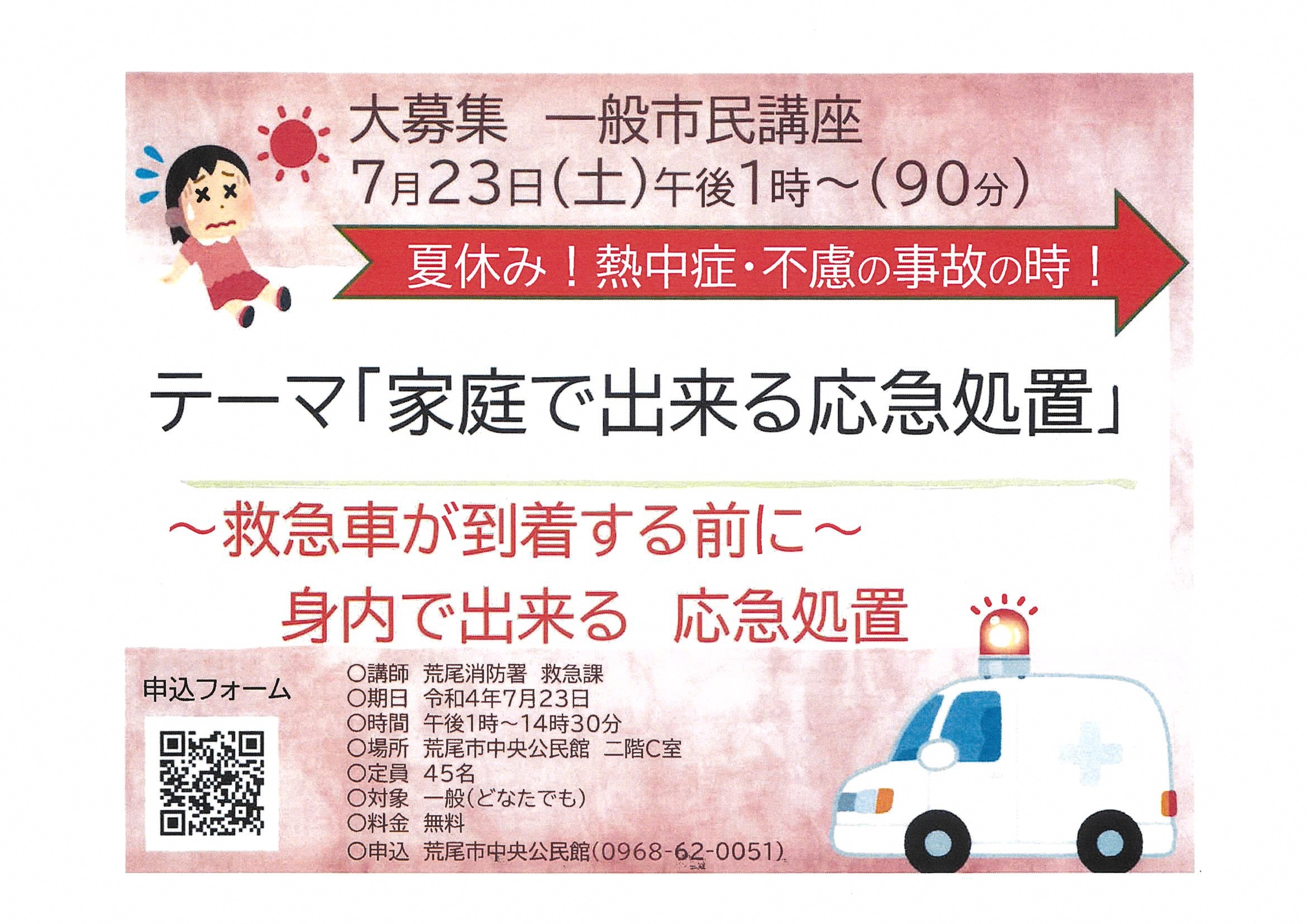 「家庭で出来る応急処置講座」参加者大募集!!