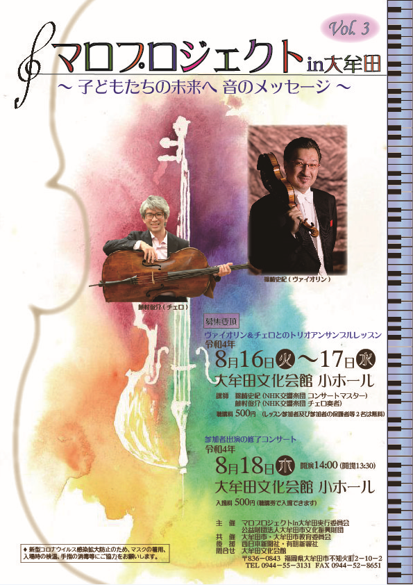 【大牟田文化会館】「マロプロジェクトin大牟田 ~子供たちの未来へ 音のメッセージ~」参加者募集!