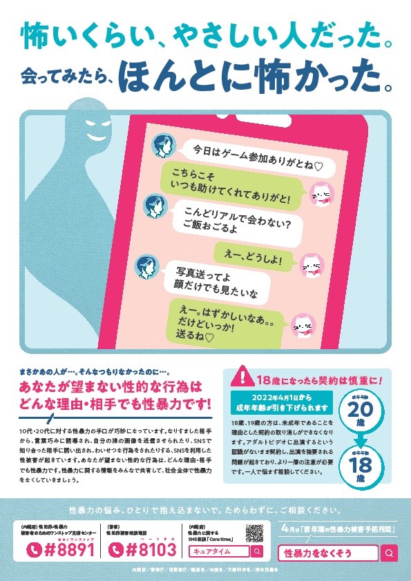 令和4年4月1日(金)~4月30日(土)は、「若年層の性暴力被害予防月間」です。