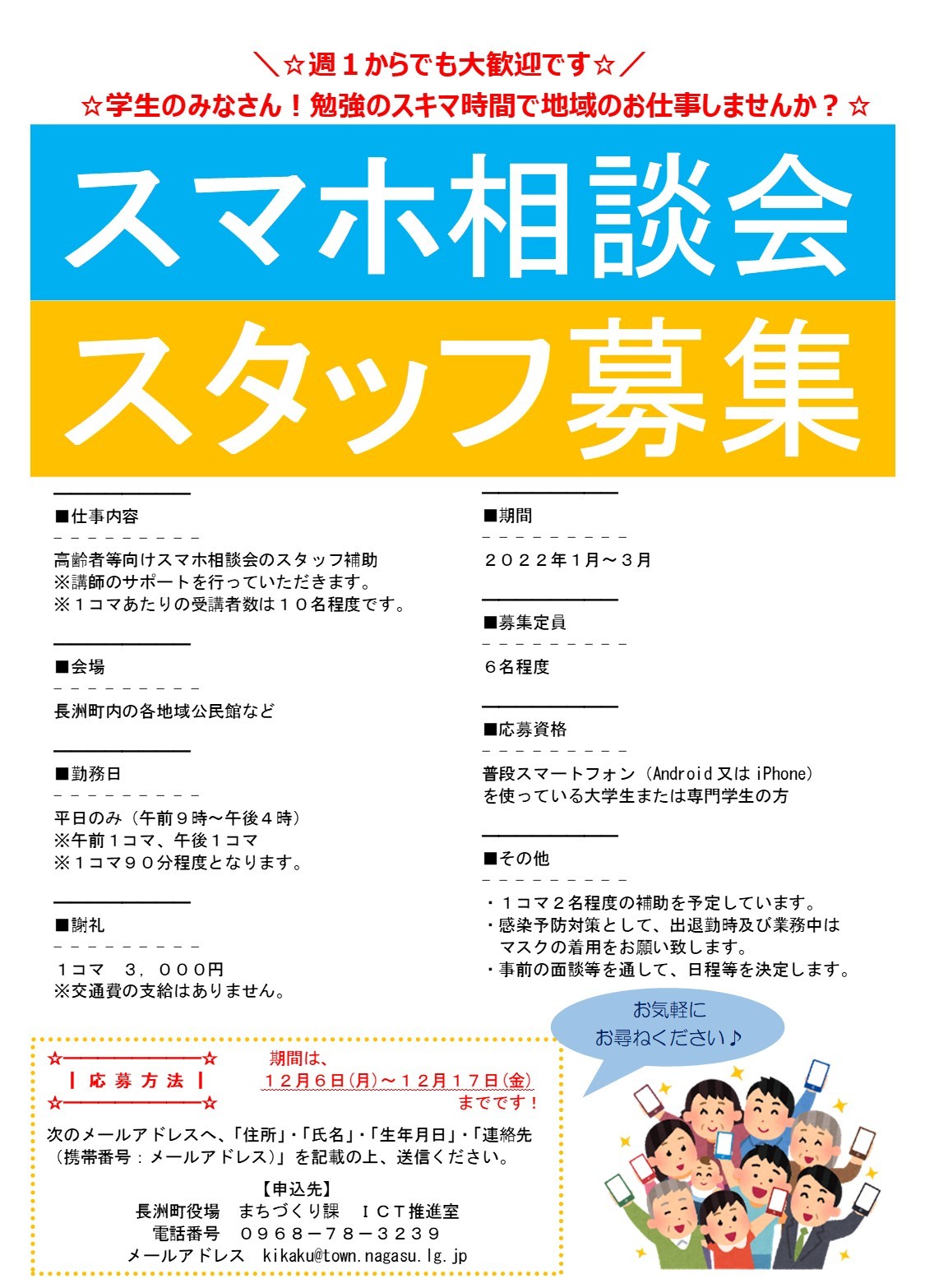 町内のスマホ教室のサポートをしていただける学生のみなさんを募集します。