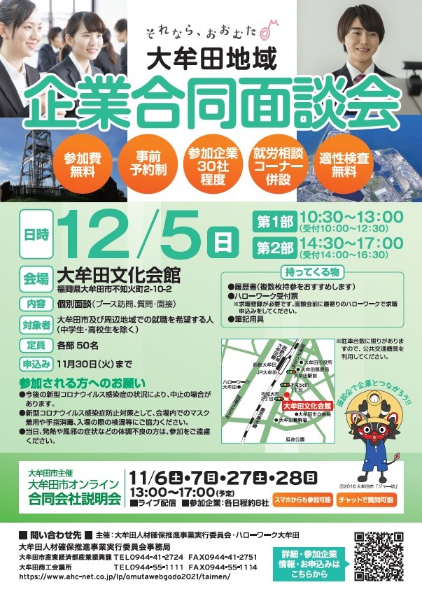 【地元で働こう!大牟田地域企業合同面談会を開催します】