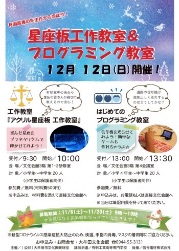 【大牟田文化会館】「アクリル星座板 工作教室&はじめてのプログラミング教室」 参加者募集中!