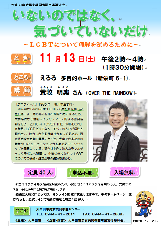発信者: 大牟田市 人権・同和・男女共同参画課 | 福祉関連,学習・講座