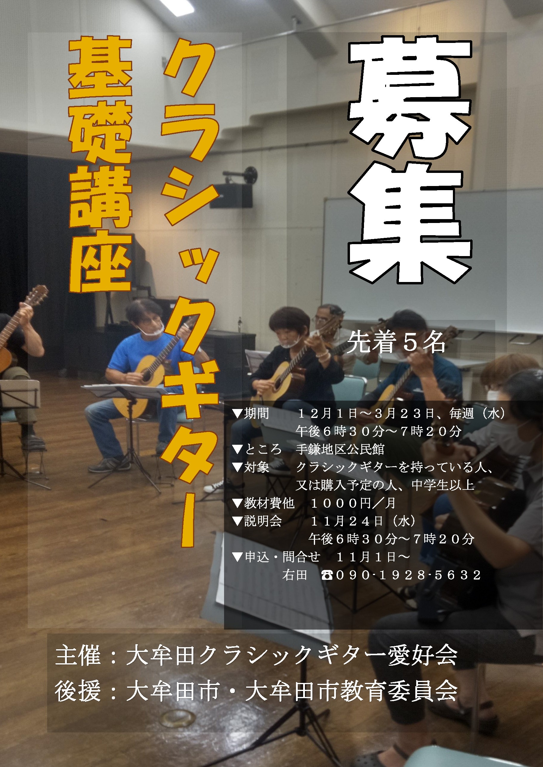 クラシックギター基礎講座 受講者募集