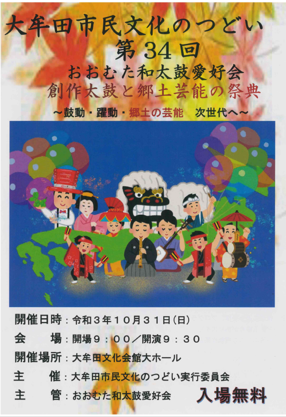 【大牟田文化会館】「創作太鼓と郷土芸能の祭典 ~つなげよう郷土の芸能 次世代へ~」が開催されます(大牟田市民文化のつどい)