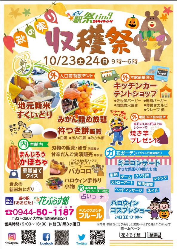 道の駅花ぷらす館では、“秋の実りの収穫祭”が開催されます!