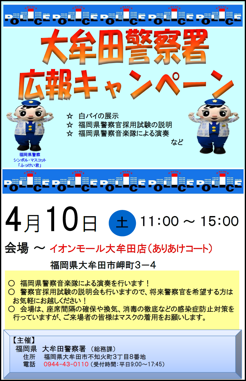 イオンモール大牟田において、警察官募集イベントを開催致します!