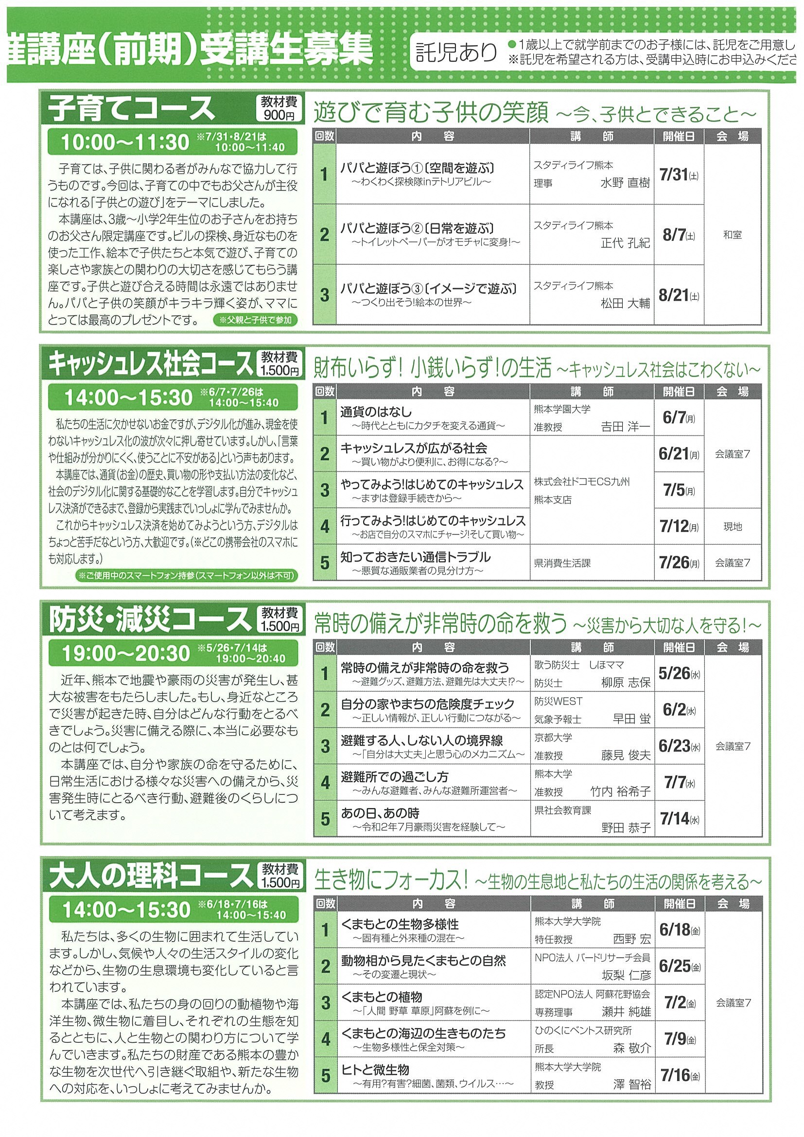 熊本学講座、子育て講座、防災・減災講座など全11講座