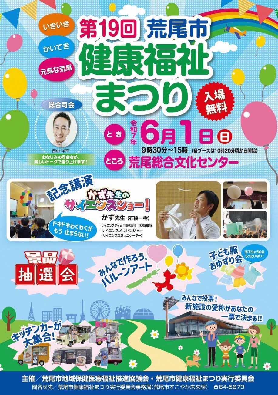 令和7年6月1日(日曜)に「第19回荒尾市健康福祉まつり」を開催します。
