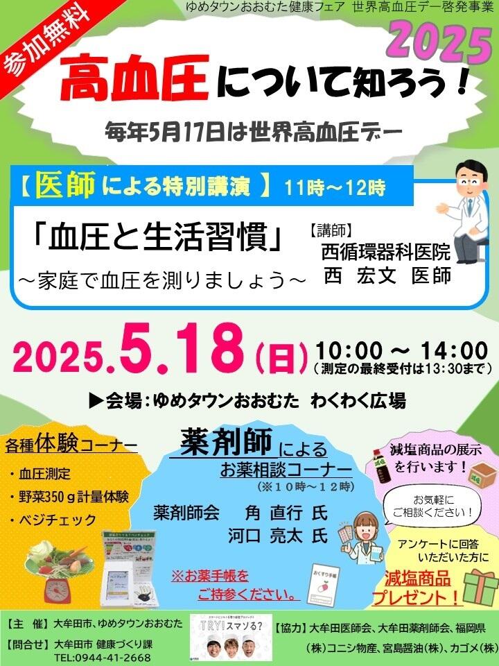 5月18日ゆめタウン「おおむた健康フェア(高血圧について知ろう!)」開催!
