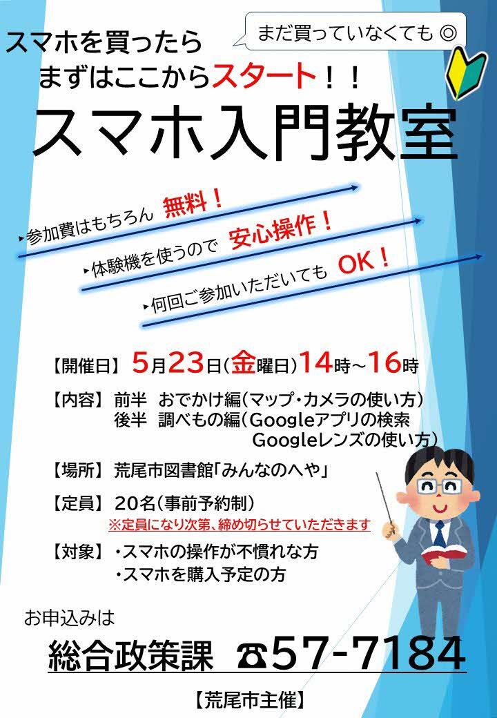 「スマホ入門教室」開催します!