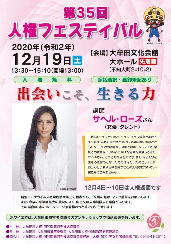今年は、イラン出身の女優・タレントのサヘル・ローズさんに「出会いこそ、生きる力」と題してご講演いただきます。